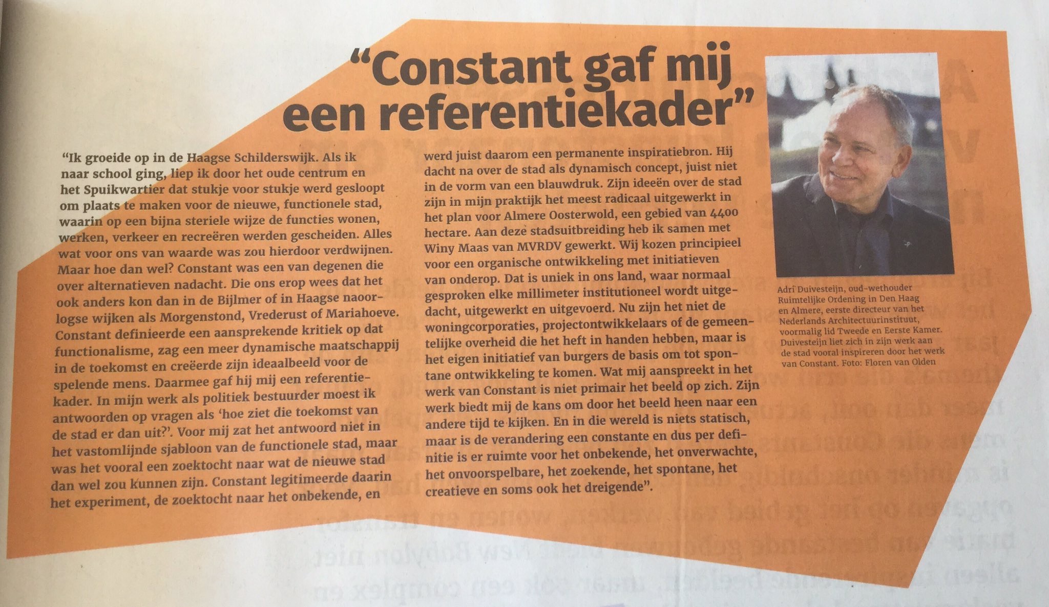 Met zijn ideeën voor een stad waarin mensen vrij zijn, waarin ruimte is voor creatieve expressie en waarin alles met elkaar in verbinding staat – als ware het een labyrintisch netwerk – was Constant een pionier in de naoorlogse rehabilitatie van de organische stad. Veel van wat ik in Den Haag en (met name) Almere heb bepleit en gedaan kan dan ook rechtstreeks worden teruggebracht tot de tegenstelling tussen de geplande en spontane stad zoals Constant die manifest maakte. Het is daarom dat ik de ‘Labyrismen’ van Constant als kopbeelden voor deze website heb gebruikt, en expliciet heb toegelicht waarom en hoe zijn werk mijn handelen heeft beïnvloed. In het openingswoord dat ik mocht uitspreken op 28 mei bij de tentoonstelling Constant – New Babylon: Aan ons de vrijheid in het Gemeentemuseum Den Haag ga ik daar nog wat specifieker op in.