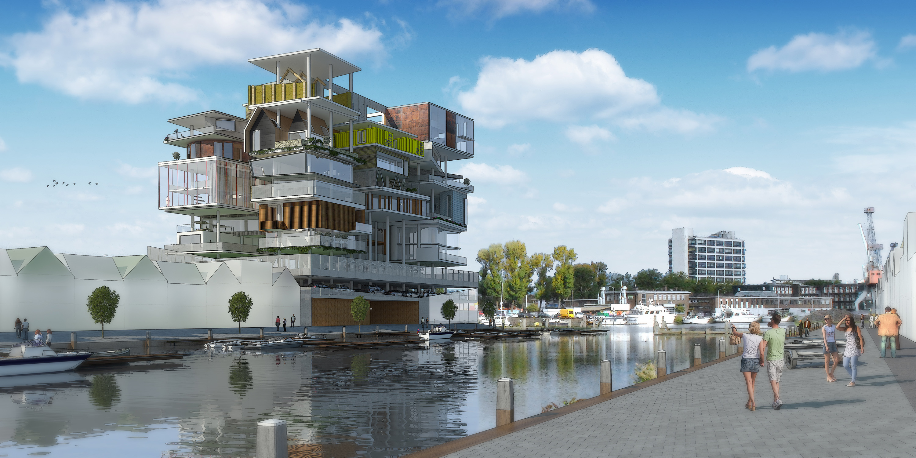 Voor mij vertegenwoordigt de prijsvraag, en dat heb ik gisteren ook aangegeven, de kop op een proces dat al langer gaande is, namelijk de omslag van aanbod- naar vraaggestuurde bouw, van de dominantie van institutionele partijen naar andere vormen van opdrachtgeverschap, van de grote naar de kleine schaal en vooral: van een markt gericht op de gemiddelde woonconsument naar een markt waarin de burger, als producent van het eigen wonen, centraal staat. Tot nog toe had deze omslag met name betrekking op laagbouw in de uitbreidingsgebieden. De prijsvraag ‘Bouwen op elkaar’, die in mei 2013 door de gemeente Den Haag werd uitgeschreven, moet daar verandering in brengen. Of, zoals Norder het onder woorden bracht: “We hebben veel geleerd van voorbeelden in Almere of Roombeek in Enschede; veel – neem bijvoorbeeld het Kavelpaspoort en de Kavelwinkel – is letterlijk copy/paste. Met ‘bouwen op elkaar’ gaan we een stap verder; we kijken hoe je in het bestaand stedelijk gebied, waar de opgaven wezenlijk anders zijn, op basis van kleinschalige initiatieven geleidelijk aan de hoogte in kunt.”